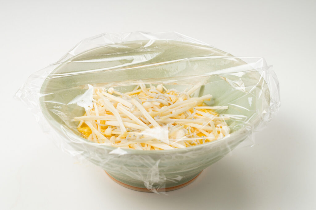 だし不要で簡単!シラスとえのきの旨みが詰まった、レンジで作れる茶碗蒸し。